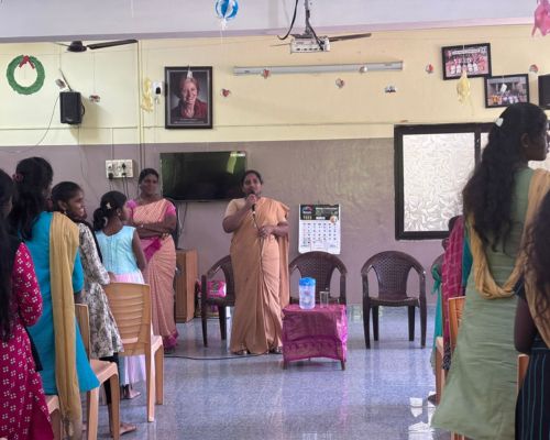 The Women’s Day celebration on 8th March 2026 at Saranalayam became memorable with the presence of Mrs. Helen, Teacher from St. Lourdes School, as the Chief Guest.She spoke to the children about the importance of education, discipline, self-awareness, and courage, encouraging them to believe in themselves and always choose the right path. The session, along with uplifting Tamil songs about women’s strength, brought joy and inspiration to the children and filled them with hope for their future.